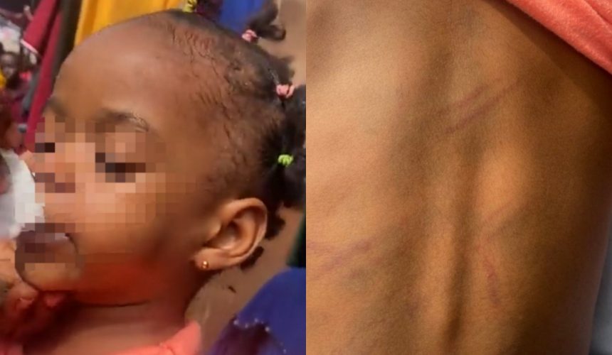 A 3-year-old girl was left with red marks on her back after she was allegedly flogged by her teacher.