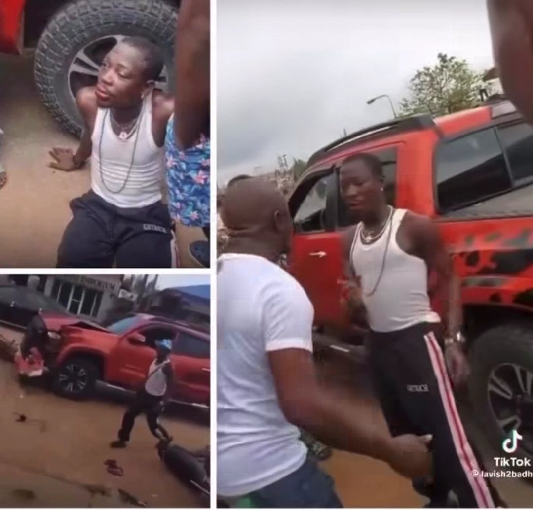 In viral footage circulating on social media, DJ Chicken was seen being slapped repeatedly and forced to sit on the floor by a group of men who confronted him at the scene. Some voices in the background could be heard shouting angrily, demanding an explanation for the crash.