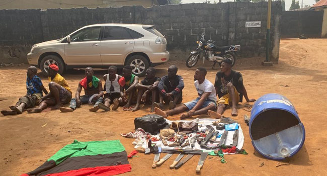 Those arrested have been identified as Ekene Abiaziem age 31 years m of Mgbidi, Emmanuel Nwabueze m age 58 years of Mgbidi, Ifeanyi Eze m age 38 years of Mgbidi, Izunna Chukwukezie m age 39 years of Okwudo, Ejike Onuabuike m age 44 years of Okwudo, Chukwuebuka Elvis Nkonta m age 27 years of Okwudo, Jerohm Amaiah m 33 years of Okwudo, Chukwuebuka Nwachukwu m age 23 years of Okwudo and Chimobi Ogbonna m age 27 years of Awomama to the station.