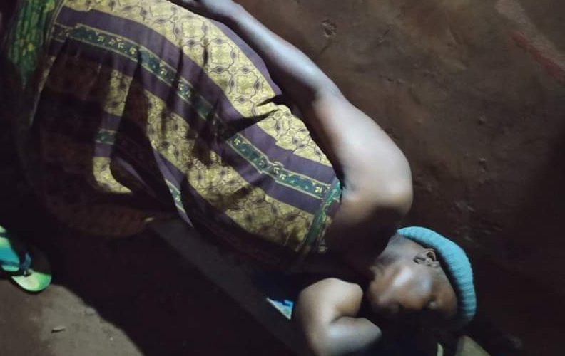 In a post shared online, the widow is seen sleeping on the floor, wearing just a wrapper and head warmer. Her slippers is seen beside her.